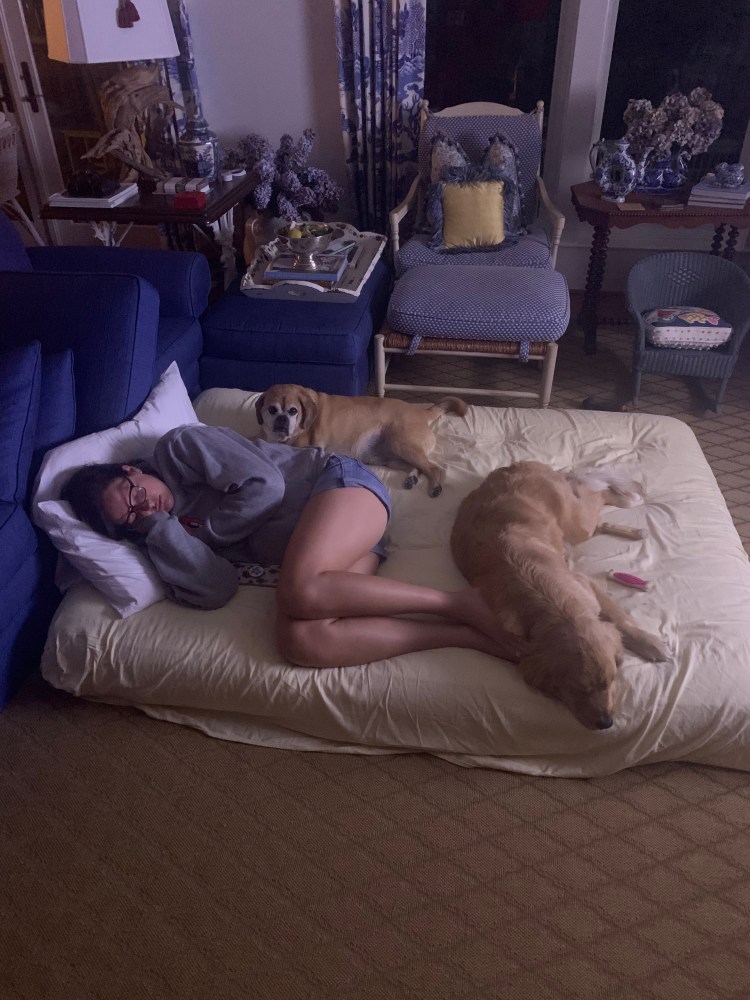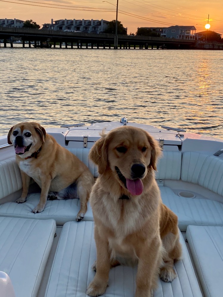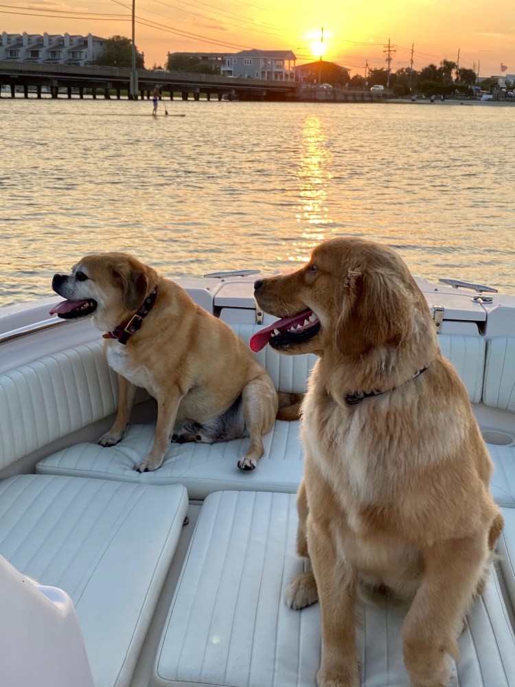 The afternoon featured a family boat ride to palm tree island for Ellie to stretch her legs a bit and for the adults to get some sun. Although the sun never really wanted to come out, Eleanor had a blast socializing getting to swim with all the other pups. This is the highlight of her beach weekend and it’s awesome to be able to let her off the leash and get some good activity while the adults hangout in the water. After going all out the previous evening, Sunday was a bit simpler with a couple of pizzas from Mellow Mushroom. So filling and delicious, we were all in bed early after this long day.