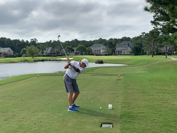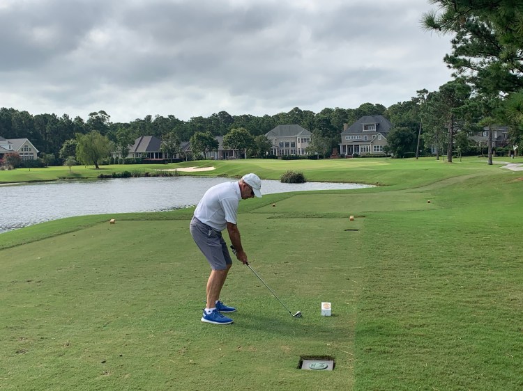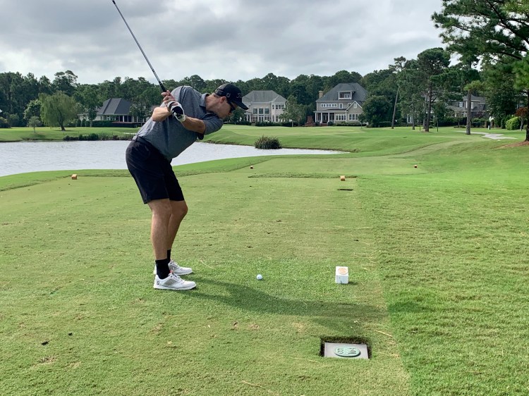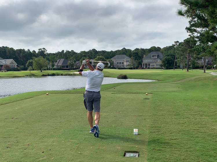 Since we had a late start to the day, we decided on nine holes at the Pete Dye course, actually teeing-off on number ten. Landfall features two top-notch tracks: the Nicklaus featuring three individual nines (Marsh, Ocean, and Pines) and the aforementioned Dye Course with another incredible eighteen holes. Although I prefer the Nicklaus course–Marsh to Ocean in particular–the Dye course is great in its own right and has some iconic holes. This afternoon, we were lucky enough to have the course to ourselves and breezed through the back nine.