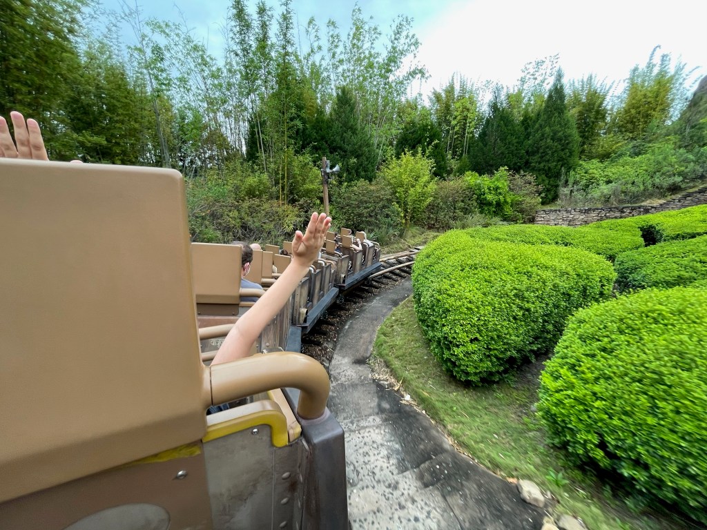After grabbing some nearby drinks to build-up our courage (a recurring theme, we needed a lot of courage lol), we jumped in the very fast moving line for Everest. Even the queue of this attraction is over-the-top detailed and amazing in every way. Also really cool to know that all of the artifacts and props in the queue are authentic as can be. Disney Imagineers never cease to blow my mind. Just a short ten minute wait later, we were boarding the middle of the coaster train for our encounter with the mythical Yeti. It was the perfect way to kick off our trip.
