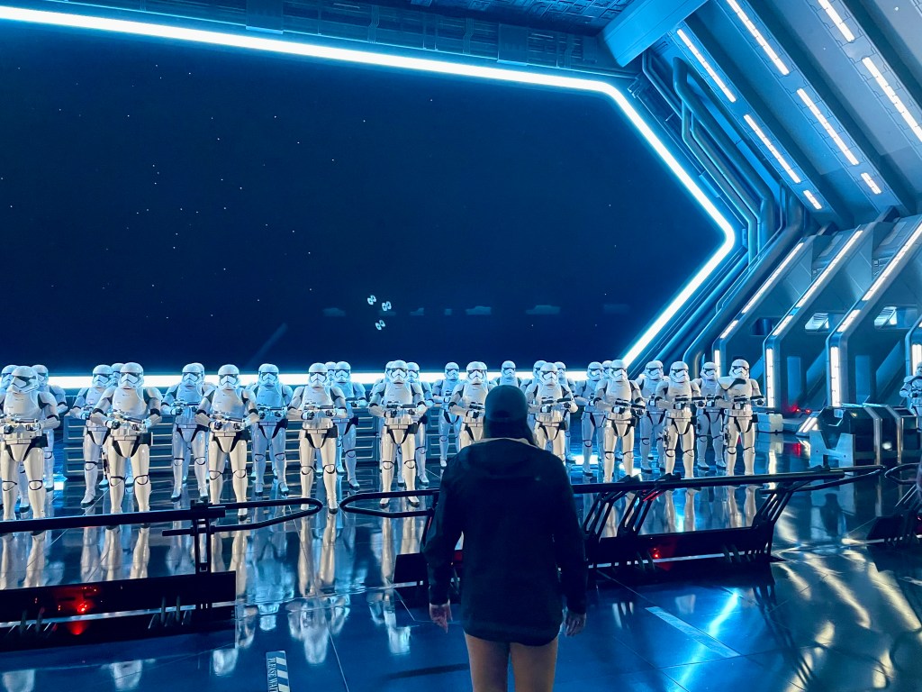 If you haven’t heard by now, Rise (shorthand) is a “dark ride” that opened at Hollywood Studios just a few shorts months prior last year’s pandemic closure. It is the most technologically advanced attraction ever built, so naturally the hype surrounding the ride is astounding. I think I read somewhere that only 30% of all park guests (on a given day) at Hollywood Studios get a chance to ride because there is such an extreme demand. The reservation system that the park utilizes allows ticket holders to reserve a time slot to ride each morning at 7am, but they tend to be completely sold out out in a matter of seconds. Four seconds to be exact. After hearing horror stories about said reservation system, I was so nervous that we would miss out on this cutting-edge attraction. Thankfully, my extensive research into best practices paid off and I was able to secure us a boarding group.