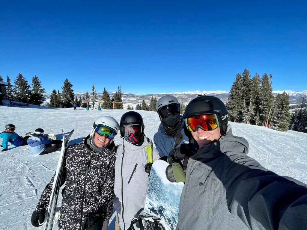 Vail reported 5″ of snow for our first day on the slopes, and we soaked up every single minute of it. In terms of the weather, we were gifted a beautiful bluebird day–sunny skies and warm temps in the upper 30’s.