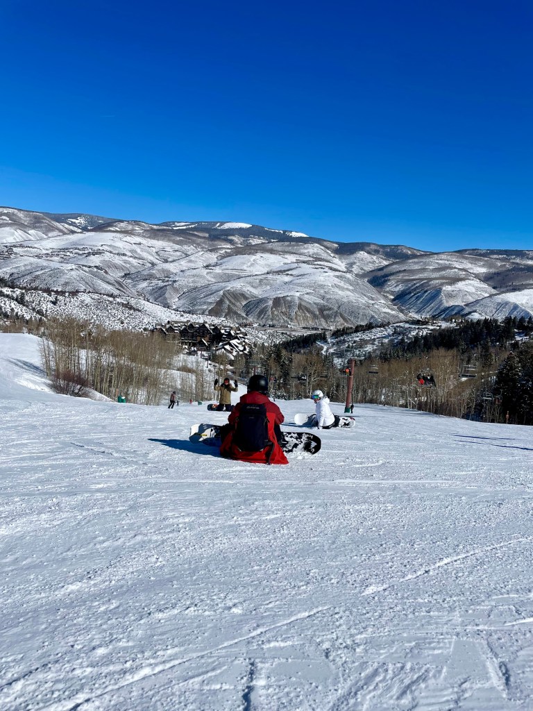 Vail reported 5″ of snow for our first day on the slopes, and we soaked up every single minute of it. In terms of the weather, we were gifted a beautiful bluebird day–sunny skies and warm temps in the upper 30’s.